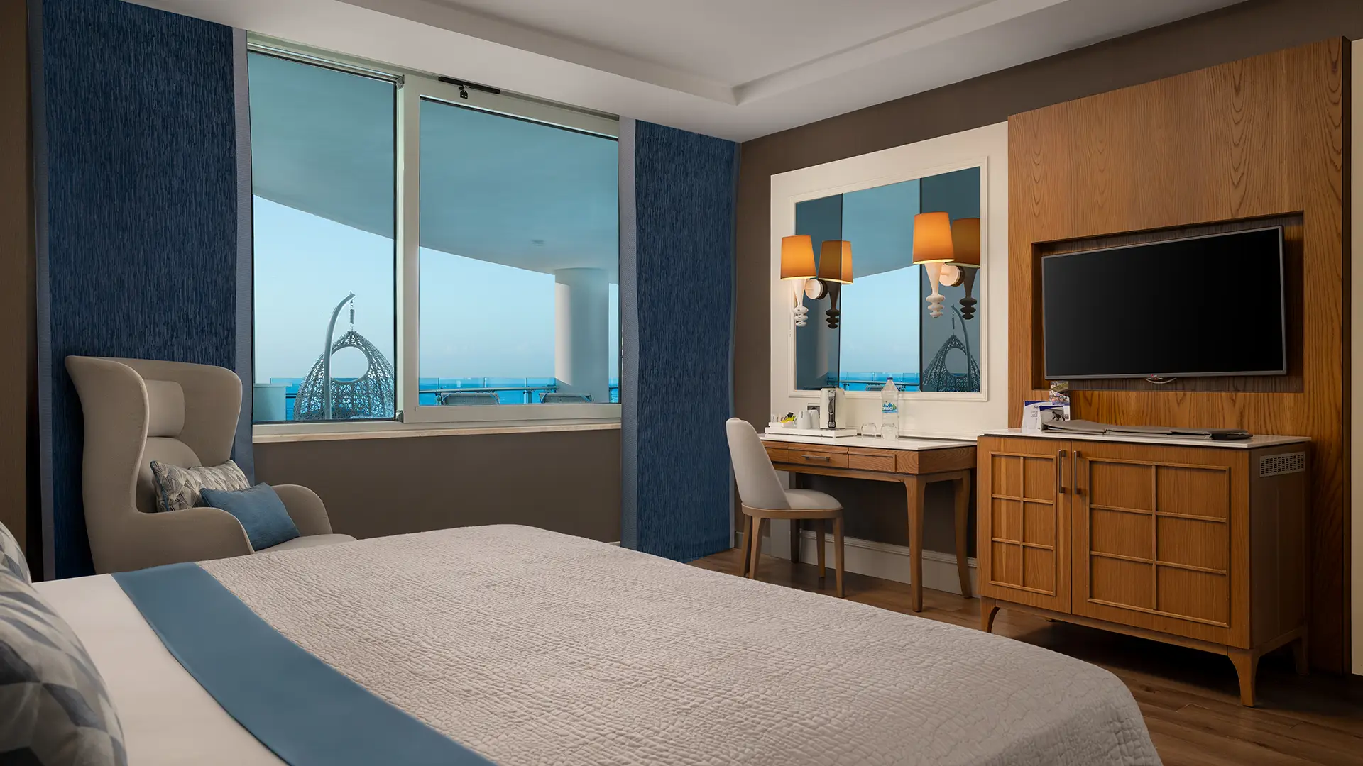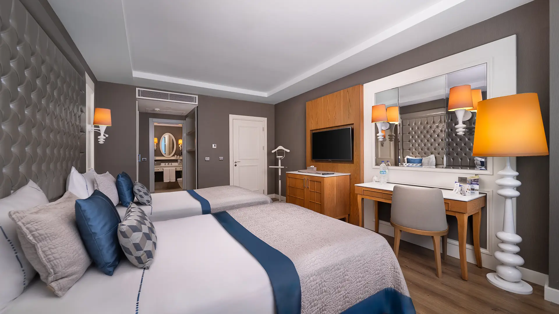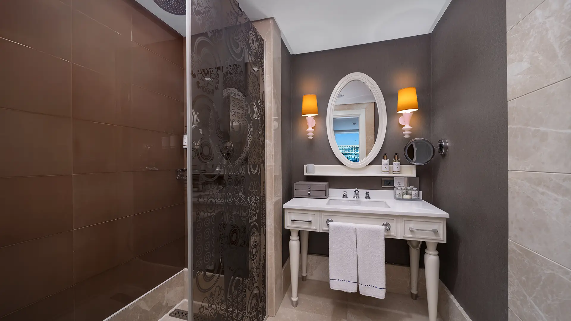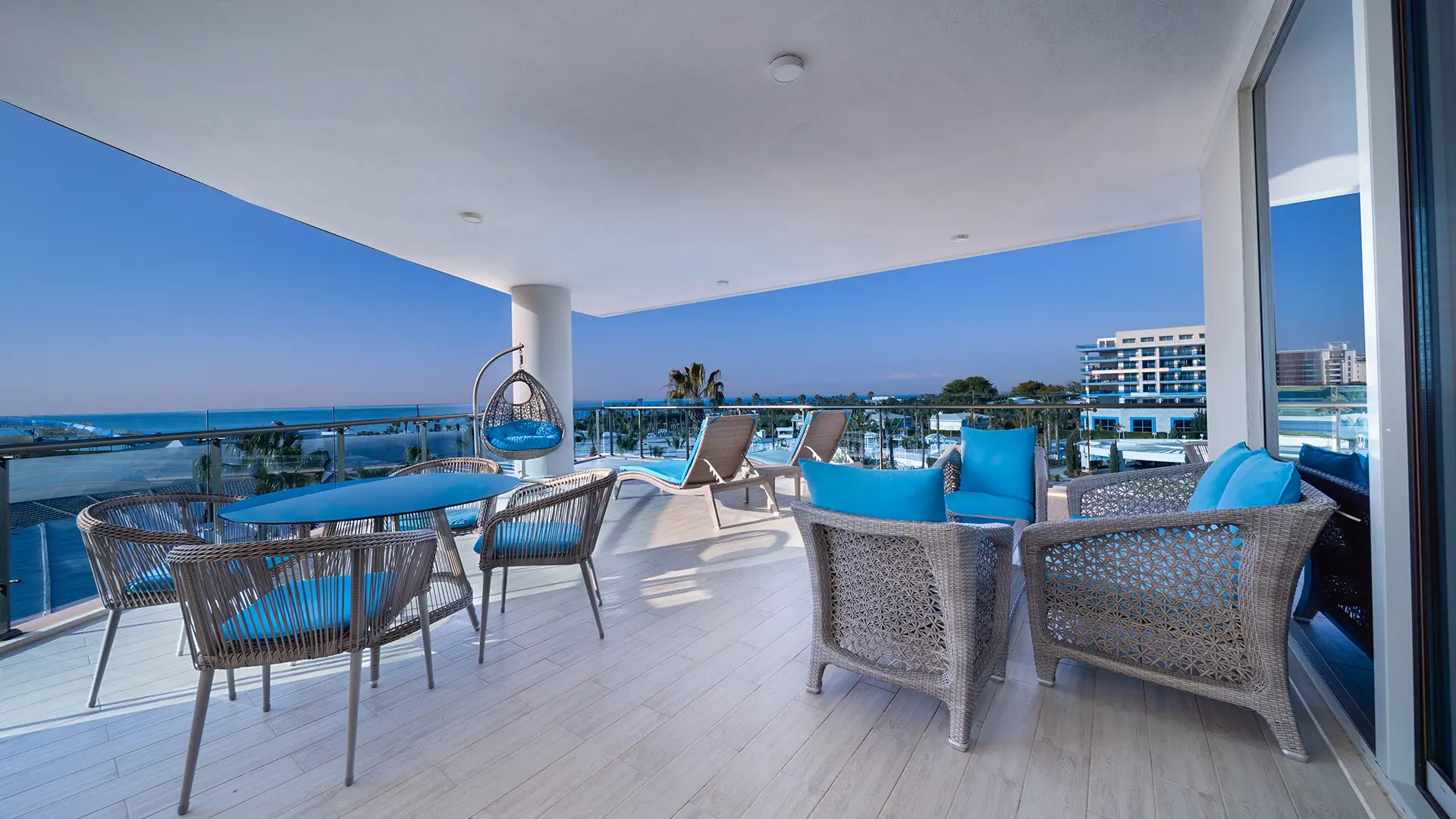 Наши номера Superior Suite Exclusive с безупречным дизайном и со вкусом обставлены, площадью 100 м² и предлагают уникальные привилегии для больших семей и компаний друзей, с двумя спальнями и гостиной. Подняв ваш отдых на новый уровень, в нашем номере есть большая зона отдыха в гостиной, а также стильный обеденный стол и тщательно продуманная барная секция. На балконе, с которого открывается уникальный вид на Средиземное море, есть джакузи, где можно приятно провести время, зона отдыха и шезлонги, чтобы вы могли наслаждаться солнцем, не выходя из своей комнаты. В главной спальне продумана каждая деталь, которая может вам понадобиться, а в ванной комнате установлена